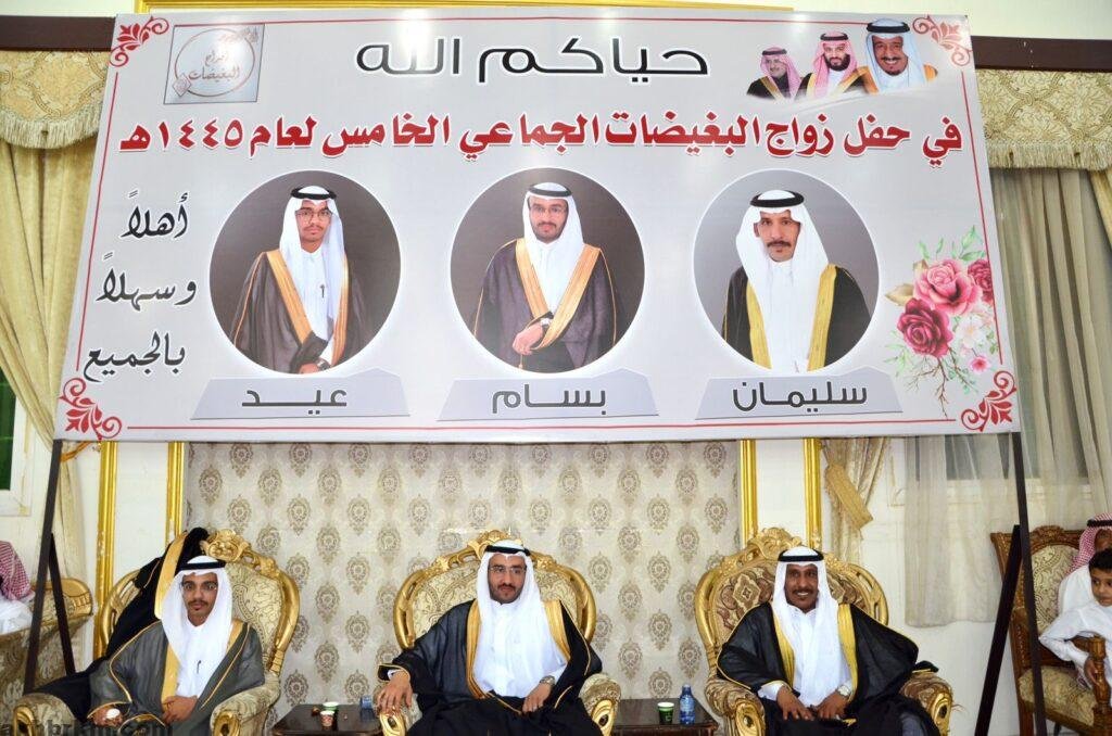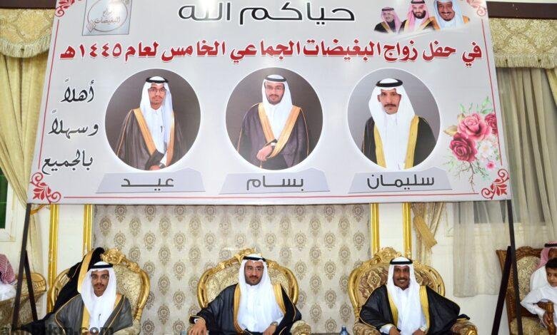 احتفلت عشيرة البغيضات من وابصه من قبيلة بلي بزواج 3من أبنائها في حفل الزواج الجماعي الخامس للعام 1445 في احتفالية كبيرة أقيمت في قاعة ليلتي للاحتفالات. وذلك بحضور العديد من مشايخ القبائل والأعيان والمسؤلين بمنطقة تبوك.وحضور غفير حضرو لمشاركة العرسان فرحتهم