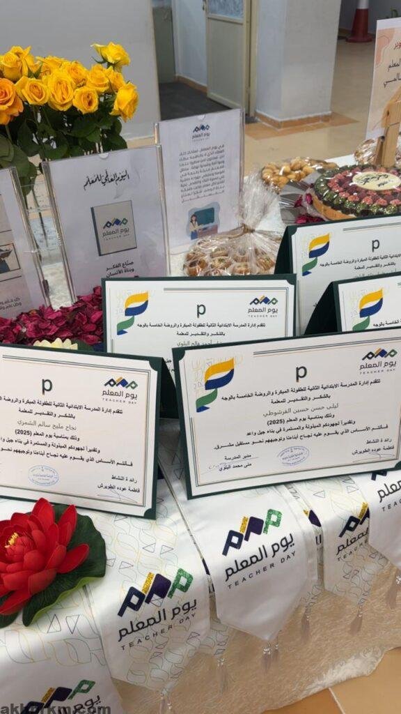 وأكدت الأستاذة منى البلوي، مديرة المدرسة، أن هذه المناسبة تمثل فرصة ثمينة لشكر المعلمين والمعلمات على عطائهم المتواصل، مشيرة إلى أن المدرسة تواصل جهودها في تقديم بيئة تعليمية متكاملة ومحفزة، تهدف إلى تنمية قدرات الأطفال في مراحل التعليم المبكر، بما يتماشى مع رؤية وزارة التعليم في دعم الطفولة المبكرة والارتقاء بجودة التعليم الأساسي.
