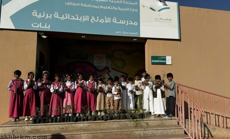 بيئة رنية تنفذ مبادرة تشجير مدرسة الأملح الابتدائية والروضة الملحقة