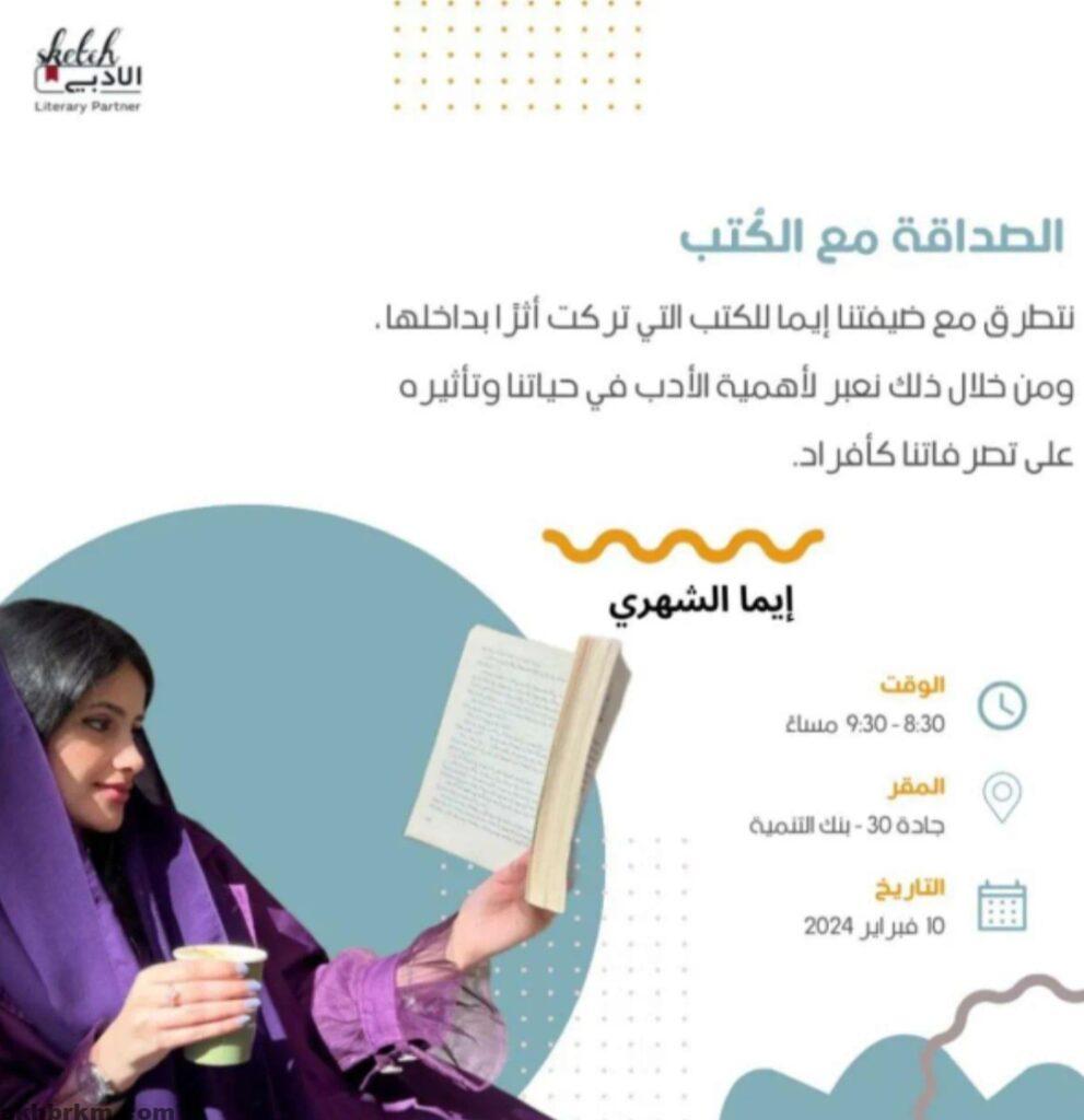 فعاليه ليلة من ليالي الشريك الادبي “الصداقة مع الكتب ” مع الاستاذة : ايما الشهري