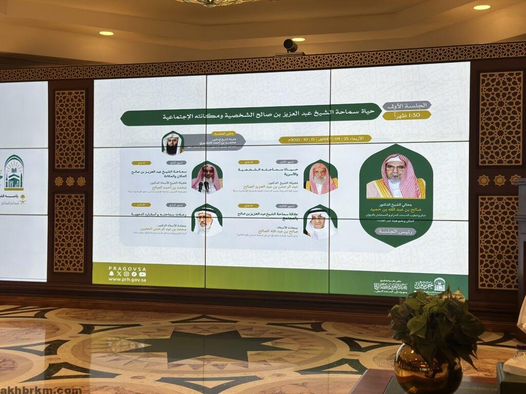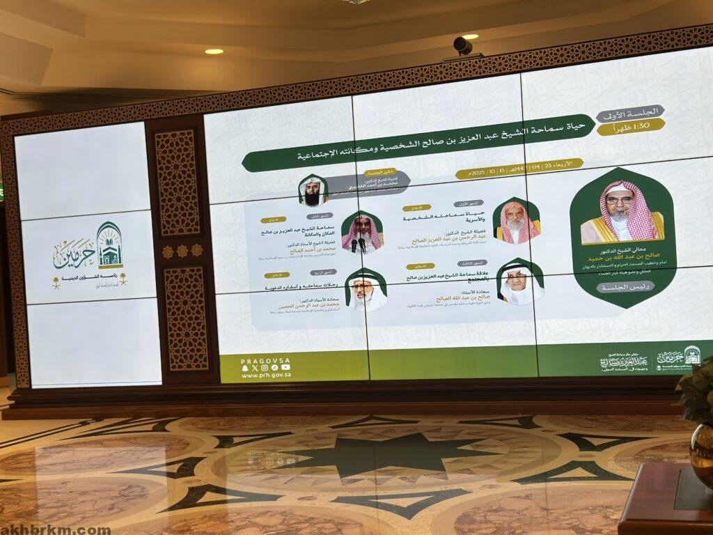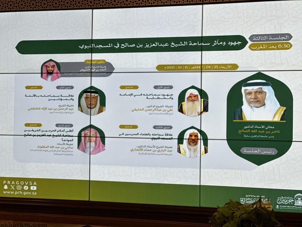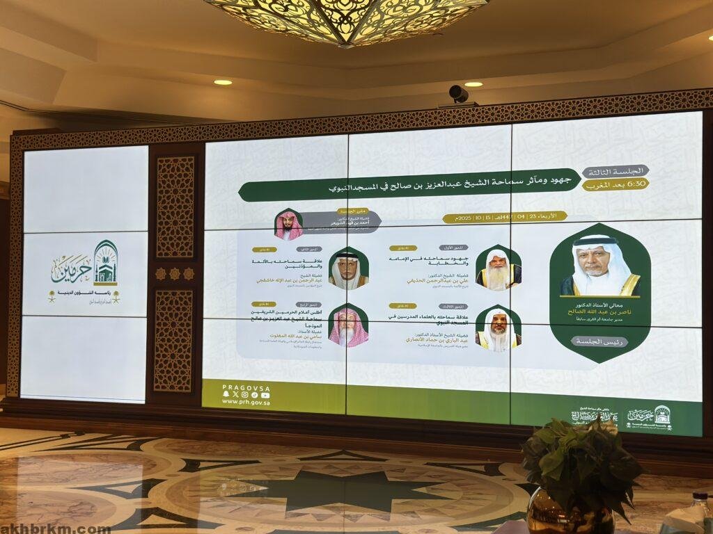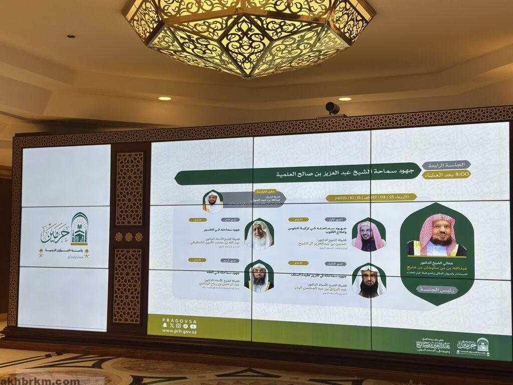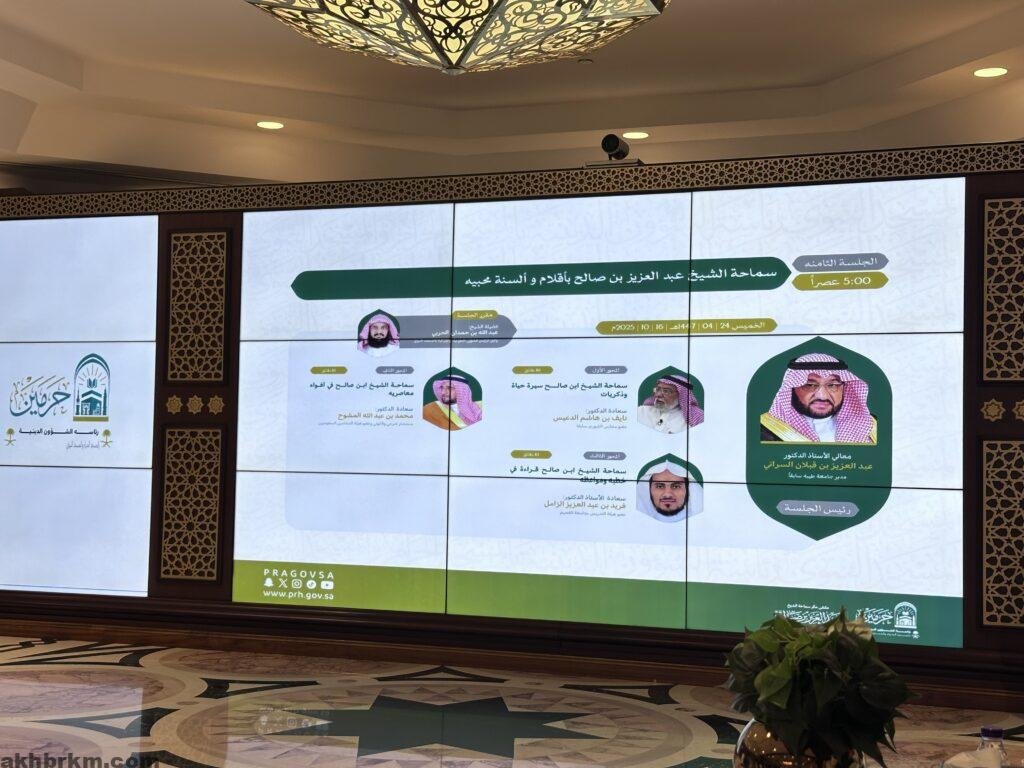 وأوضح معاليه أن الملتقى يضم تسع جلسات علمية، تُطرح خلالها خمسة وثلاثون بحثًا علميًا تتناول سيرة سماحته وجوانب عطائه العلمي والدعوي والإداري، إلى جانب جلسة نسائية خاصة بمشاركة بنات سماحته – رحمه الله – تُسلّط الضوء على الجوانب الشخصية والأسرية من حياته، وإسهاماته في دعم التعليم والدعوة النسائية في المسجد النبوي.