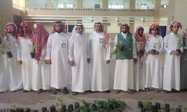 بيئة الكامل توزع 400 شتلة على ثانوية الكامل ضمن حملة التشجير