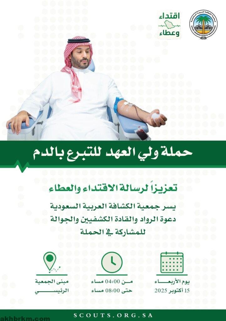 وتأتي الحملة تزامناً مع مبادرة صاحب السمو الملكي ولي العهد رئيس مجلس الوزراء الأمير محمد بن سلمان بن عبدالعزيز آل سعود – حفظه الله – للتبرع بالدم، تعزيزاً لرسالة العطاء والاقتداء، وتنمية لروح المسؤولية المجتمعية لدى أفراد المجتمع، وتحفيزاً للتبرع الطوعي بالدم بما يسهم في إنقاذ الأرواح ودعم القطاع الصحي.