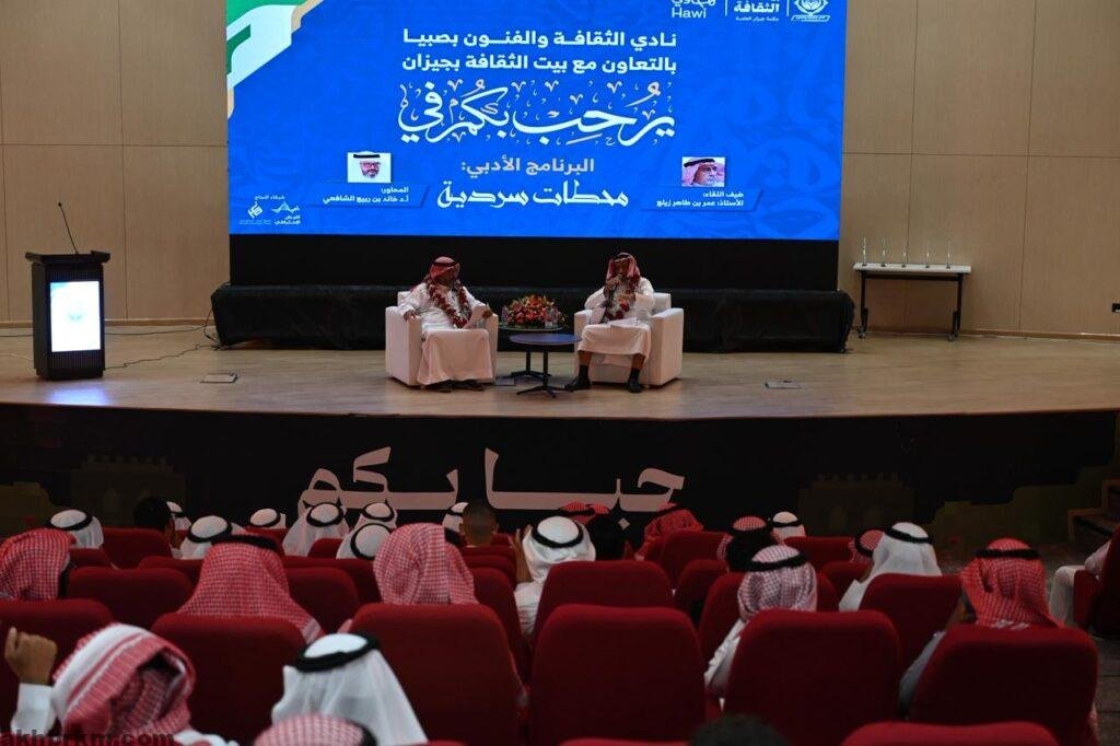 في أمسية ثقافية أدبية بارزة، نفّذ نادي الثقافة والفنون بصبيا بالتعاون مع بيت الثقافة، البرنامج الأدبي المتميز “محطات سردية” مساء أمس الإثنين . وقد أقيم اللقاء- على مسرح بيت الثقافة- من خلال أستضافة كريمة للأستاذ: عمر بن طاهر زيلع، والمحاور له الأستاذ الدكتور: خالد بن ربيع الشافعي، وسط حضور نوعي من المثقفين والأدباء.