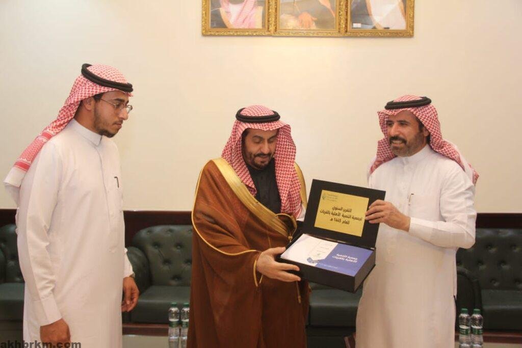 وفي نهاية اللقاء تسلم سعادة المحافظ التقرير السنوي لأعمال الجمعية لعام 1445 هـ