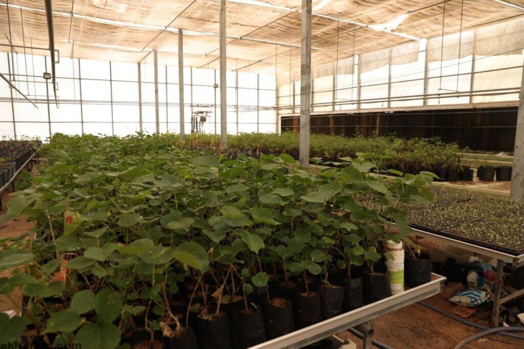 وبيّن بووشل أن المشتل يشغل مساحة 500 ألف متر مربع، ويضم محطة متطورة لمعالجة الملوحة وفلترة المياه لتوفير مياه ريّ مناسبة لمختلف أنواع النباتات، إلى جانب بيوت محمية يتم التحكم فيها آليًا ومساحات مخصصة لتجميع النباتات مؤقتًا قبل توزيعها على المشاريع الميدانية.