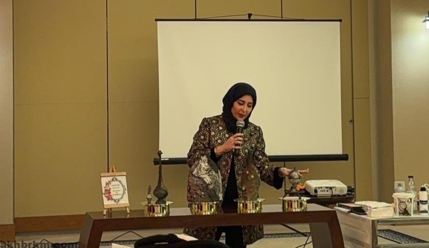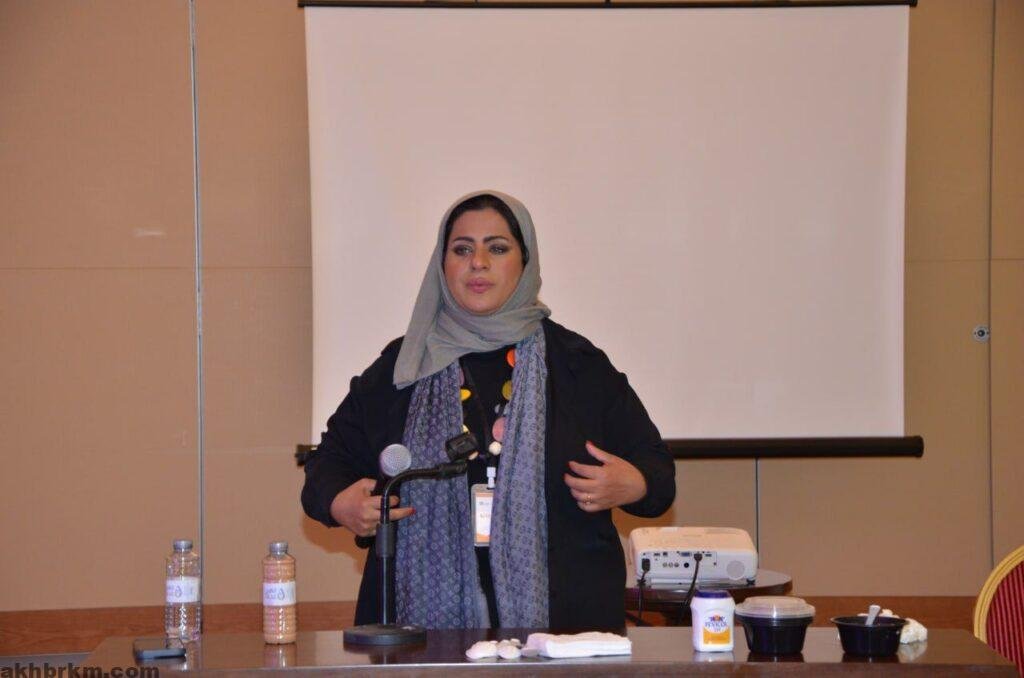 بينما كانت الورشة الثانية للفنانة التشكيلية / رانيا الراشد من دوله الكويت بعنوان (استخدام عجينة الرمل في انتاج لوحة فنية) وذلك من خلال مزج الرمل بغراء الخشب والماء بنسب معينة لتعطينا عجينة ذات قوام سميك نوعًا ما ثم وضع العجينة على لوحة الكانفس .