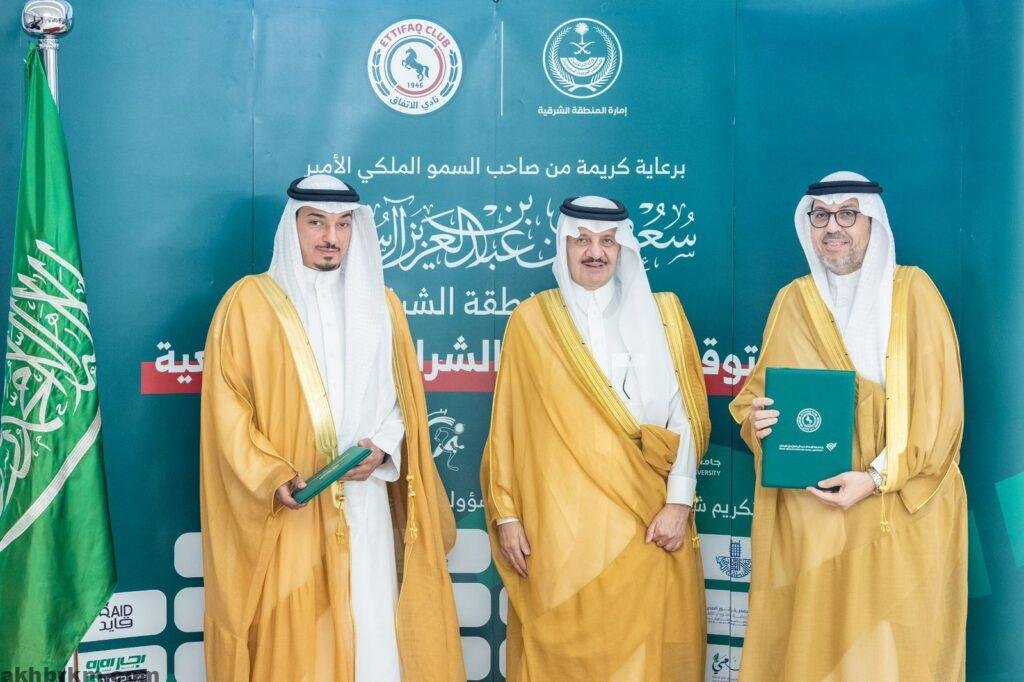 وشهد سمو أمير المنطقة الشرقية توقيع عدد من الاتفاقيات المجتمعية، شملت اتفاقية تعاون بين نادي الاتفاق وجامعة الإمام عبدالرحمن بن فيصل، واتفاقية مع جمعية بتور الصحية لرعاية مبتوري الأطراف، بهدف دعم البرامج التنموية وتوسيع مجالات التعاون لخدمة المجتمع وتعزيز مفهوم المسؤولية الاجتماعية في المنطقة الشرقية.