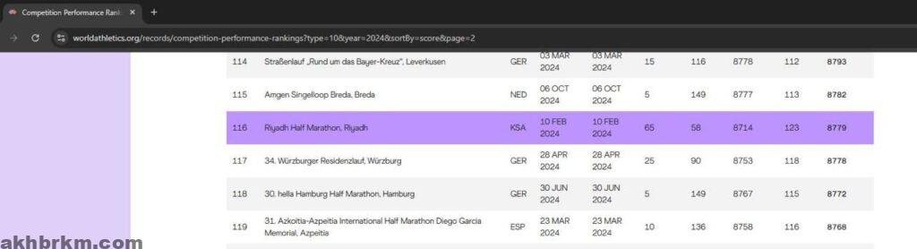 اما بخصوص المسابقات المعترف بها من قبل الاتحاد الدولي لألعاب القوى والمقامة في المملكة العربية السعودية، نود أن نبلغكم أنه في عام 2024، فإن السباقات التالية تُعد جزءًا من التقويم الدولي (أي معترف بها بتصنيف “World Athletics Label”):