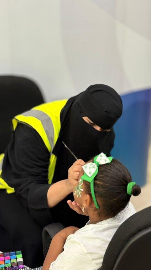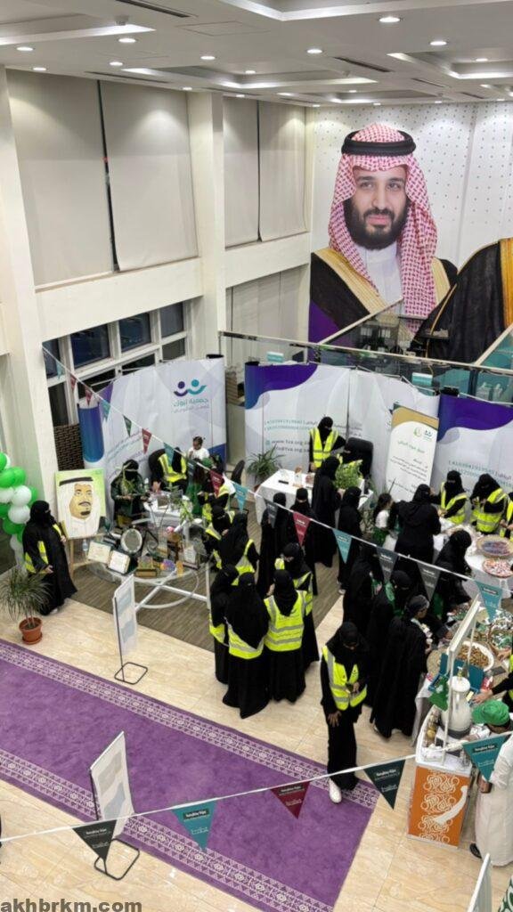 كما تخلل الحفل معرض يحتوي على العديد من الأركان تنوعت بين إعادة التدوير وجدارية “عزنا بطبعنا” عبر فيها الحضور عن مشاعرهم بهذه المناسبة . كما شمل المعرض ركن للتصوير والرسم على وجوه الأطفال والاكلات الشعبية السعودية .