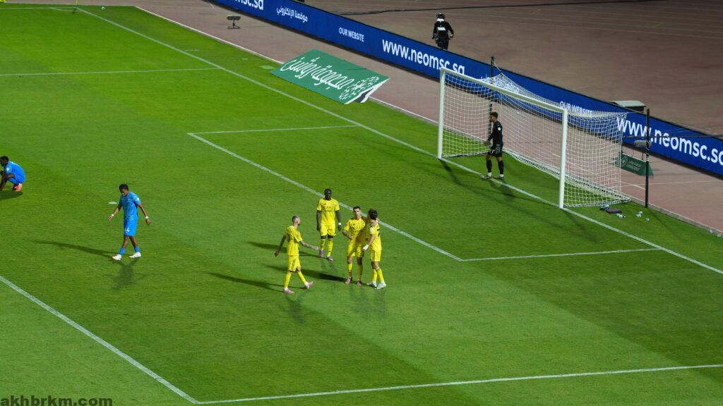 سجل أهداف النصر كل من نجيلو جابرييل في الدقيقة 47، وكريستيانو رونالدو من ضربة جزاء في الدقيقة 65، وجواو فيليكس في الدقيقة 86، فيما سجل أحمد عبده هدف نيوم الوحيد في الدقيقة 84.