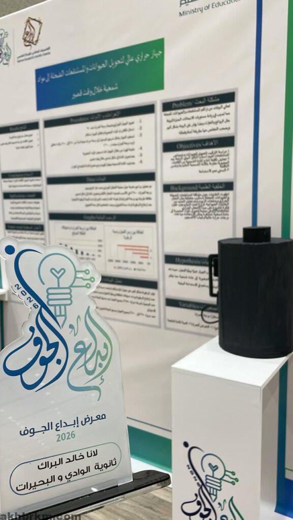 الطالبة لانا البراك من ثانوية الوادي و البحيرات بالجوف تتميز في معرض إبداع