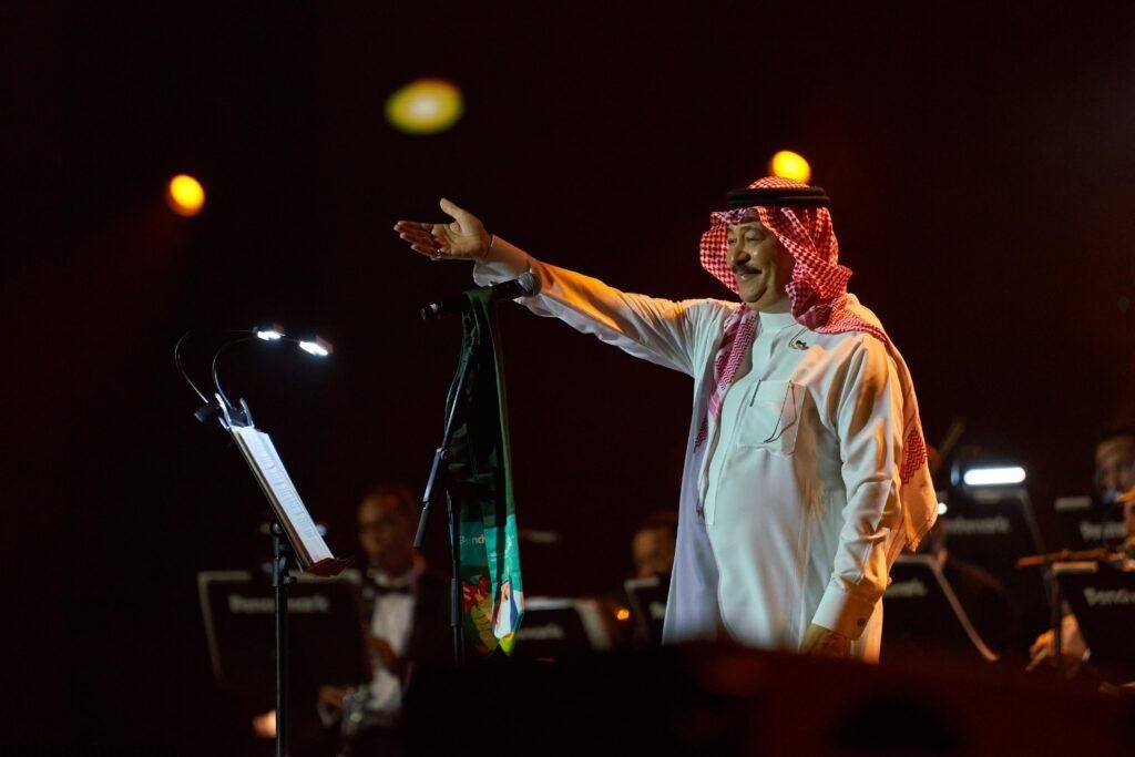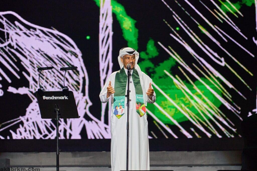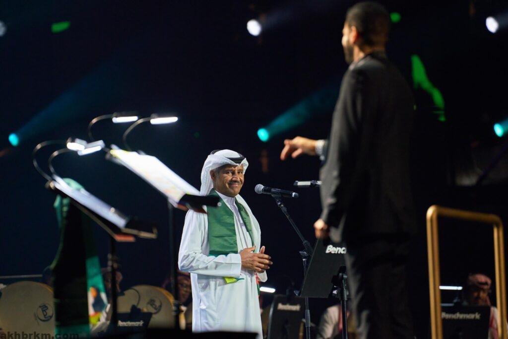 اكمل الفنان خالد عبدالرحمن وصلته بمجموعة من اشهر اغانية، ” الحب الكبير، انتظرته، أنادي، خدي نظر، ليتك لعيني قريبة، واختتم وصلته بالأغنية الوطنية “مسلم عربي سعودي قائد الأمة”.