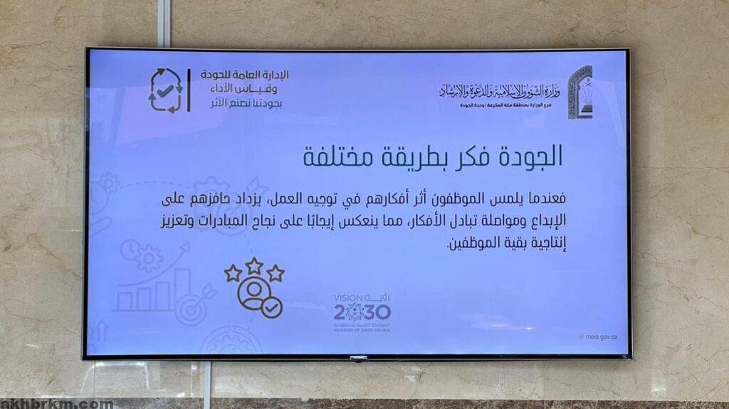 يُنفذ فرع وزارة الشؤون الإسلامية والدعوة والإرشاد بمنطقة مكة المكرمة ، ممثلاً بوحدة الجودة حملة توعوية تحت شعار “بجودتنا نصنع الأثر” تزامنًا مع اليوم العالمي للجودة والذي يُعد مناسبة سنوية لترسيخ ثقافة الجودة في المؤسسات والمجتمعات، والتأكيد على أن الجودة حجر الأساس لتحقيق التميز والريادة .