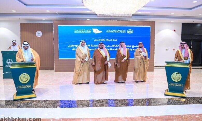 الأمير محمد بن عبدالعزيز يشهد توقيع مذكرة تفاهم بين مدينة جازان للصناعات الأساسية والتحويلية واللجنة العليا للتوطين