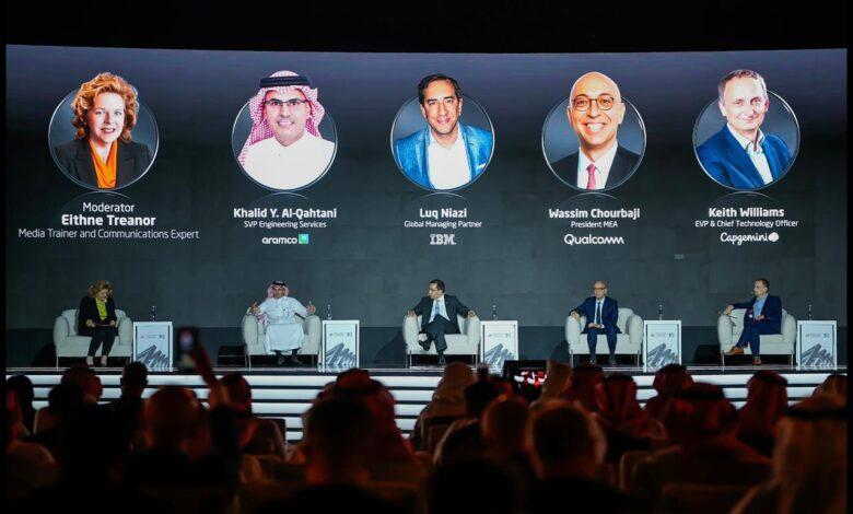 وفي الحلقة النقاشية الأولى والتي دارت حول موضوع تسريع التحول الصناعي من خلال قوة الذكاء الاصطناعي، تحدث نخبة من الخبراء والمختصين العالميين في هذا الجانب، حيث تحدث كل من خالد القحطاني نائب الرئيس الأعلى لأرامكو السعودية، وسينثيل راماني، ولوك نيازي، ووسيم الشوربجي، وكيث ويليامز، فيما أدارت الحلقة النقاشية إيثنه تريانور، المدربة