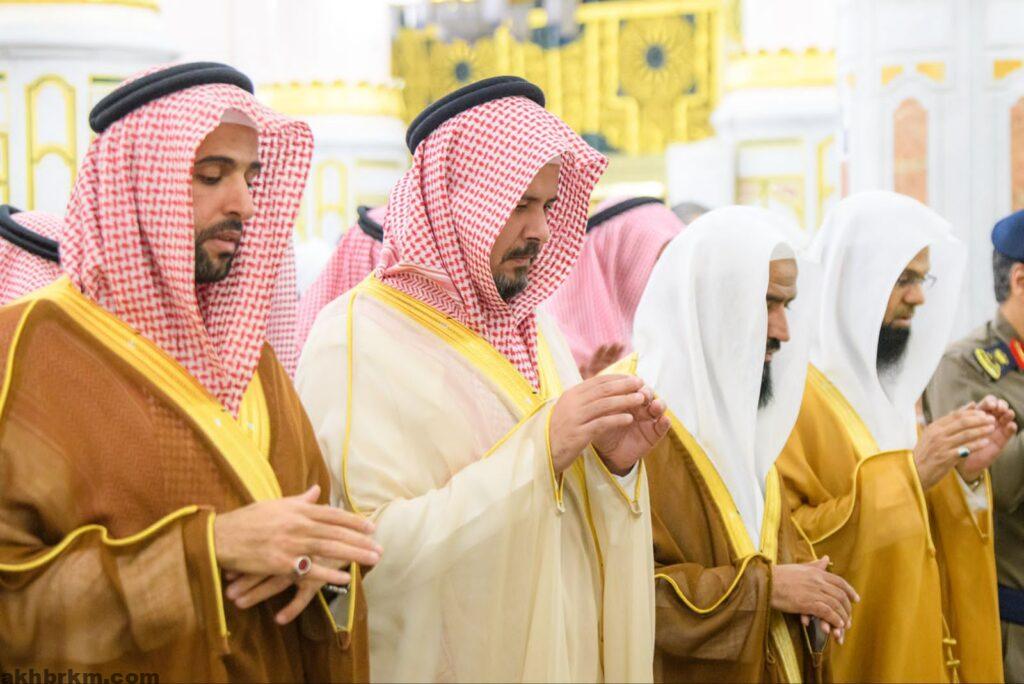 المسلمين يؤدون صلاة الاستسقاء في المسجد النبوي يتقدمهم أمير منطقة المدينة المنورة الأمير سلمان بن سلطان بن عبدالعزيز