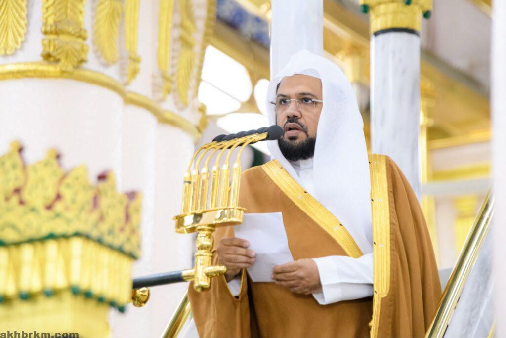 وقال إمام وخطيب المسجد النبوي: “إن خزائن الخير ومفاتيح العطاء بيد من اجتمعتم في مقامكم هذا إليه ضارعين، ووقفتم على باب فضله خاشعين، وتوجهتم إليه منكسرين، فما أوسع رحمته، وما أسبغ نعمته ومن ظن أن ذنبه لا يغفره ربه ولا تغمره رحمته، أو دعاء لا يجيبه فقد أساء الظن بربه، وجهل سعة رحمته وفضله، قال سبحانه، ( قُلْ يَا عِبَادِيَ الَّذِينَ أَسْرَفُوا عَلَى أَنْفُسِهِمْ لا تَقْنَطُوا مِنْ رَحْمَةِ اللَّهِ إِنَّ اللَّهَ يَغْفِرُ الذُّنُوبَ جَمِيعًا إِنَّهُ هُوَ الْغَفُورُ الرَّحِيمُ).
