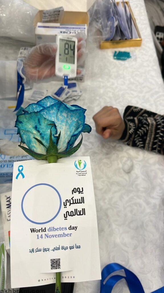 قامت الجمعية الخيرية للرعاية الصحية بمنطقة تبوك بمبادرة توعوية يوم أمس في «البارك مول» بمناسبة اليوم العالمي للسكري حيث نظّمت الفعالية تحت شعار التثقيف والوقاية من هذا المرض المزمن.
