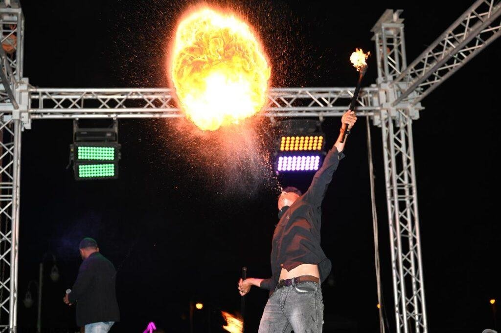 ومن أبرز العروض التي حازت على إعجاب وتفاعل الجمهور عرض نفخ النار حيث تأتي ضمن مجموعة من الفعاليات التي استهوت الزوار كالفقرات الإنشادية وألعاب الأطفال والمسرح المفتوح ، و مستلزمات الأسرة ، وعروض المسرح ، والجوائز اليومية ، والبحيرة المائية ، والألعاب الكهربائية.