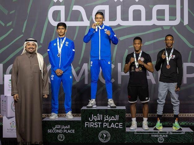 توَّج صاحب السمو الأمير فهد بن جلوي بن عبدالعزيز بن مساعد، نائب رئيس اللجنة الأولمبية والبارالمبية السعودية، أصحاب المراكز الثلاثة الأولى في فئة الكبـار لوزن 60 كجم،