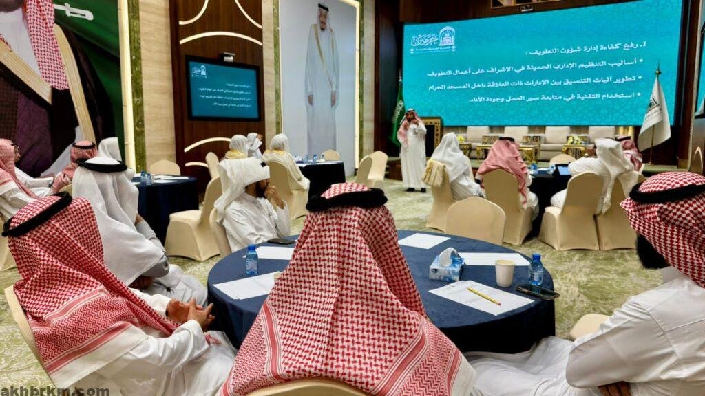 برعاية وتشريف معالي رئيس الشؤون الدينية بالمسجد الحرام والمسجد النبوي، انعقدت اليوم حلقة نقاش بعنوان “التطوير الإداري والمهاري للتطويف”، بمشاركة عددٍ من القادة والمتخصصين في مجال التطويف وتطوير الخدمات الميدانية المقدمة لضيوف الرحمن