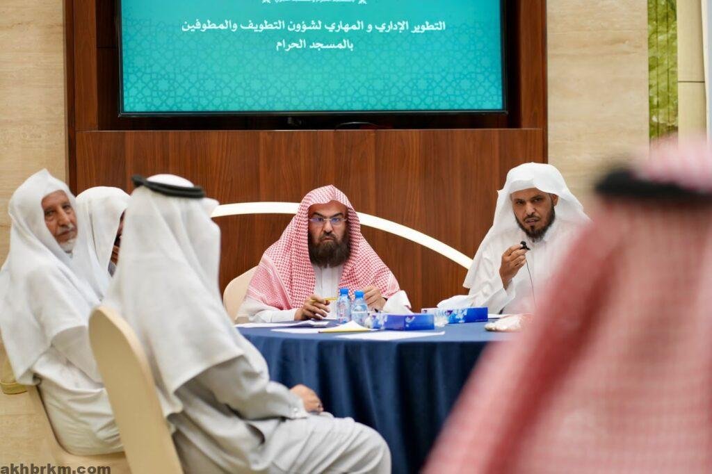 وتناول اللقاء عددًا من المحاور المتعلقة برفع كفاءة العاملين، وتعزيز المهارات الميدانية، وتطوير الأدوات الإدارية، وتحسين الخدمات التشغيلية؛ بما يسهم في الارتقاء بجودة خدمات التطويف وتحقيق أعلى معايير التميز. كما جرى استعراض تجارب ميدانية وأفكار تطويرية تواكب تطلعات الرئاسة وتسهم في تحسين تجربة قاصدي المسجد الحرام.