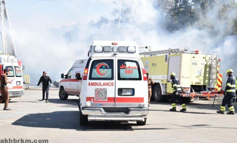 هيئة الهلال الأحمر تشارك الدفاع المدني في تنفيذ فرضية حريق بمنتزه رغدان