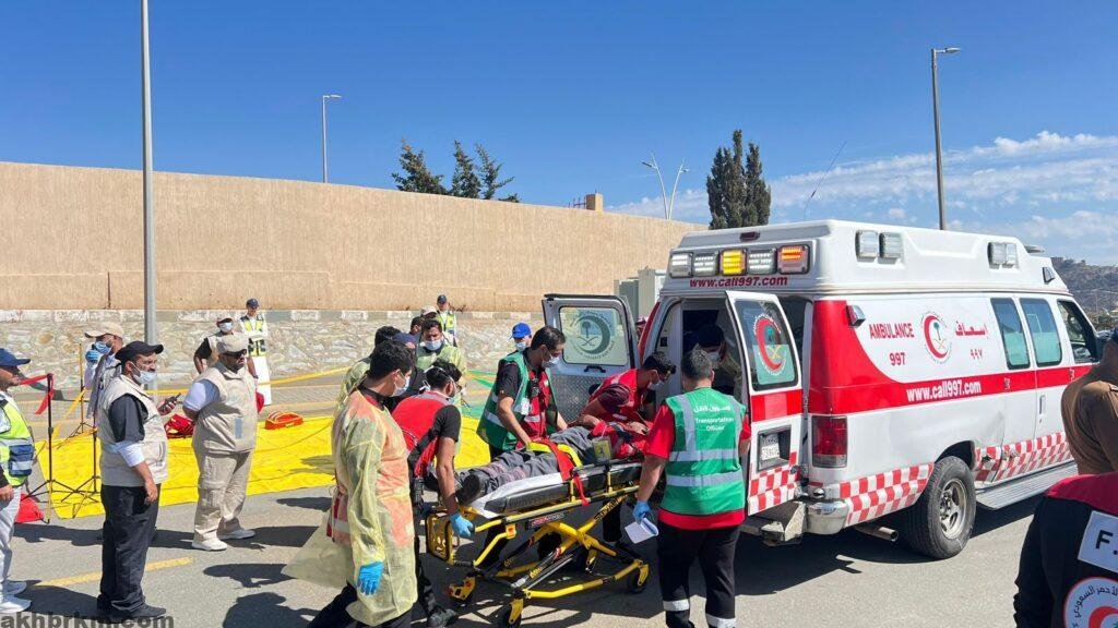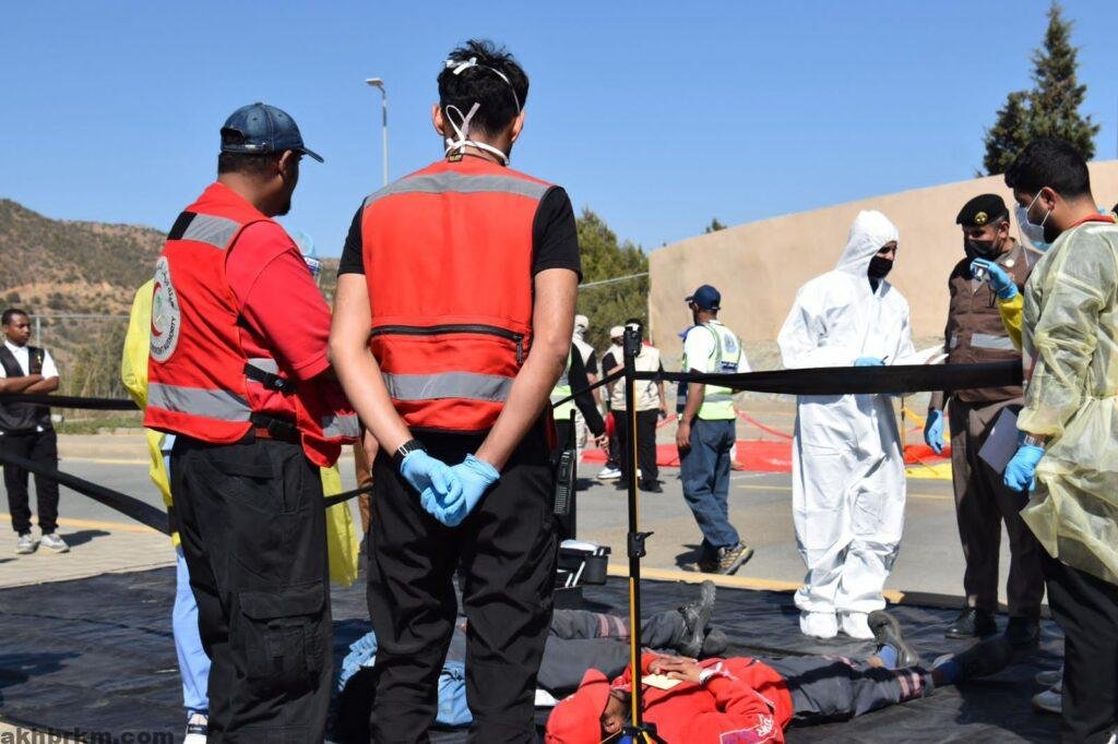 تم المشاركة في الفرضية بعدد من الاليات ( ٥ فرق إسعافية، وباص تعدد الإصابات أحد، وعربتين بولاريس، إضافة إلى عربة غولف، وعربتين استجابة سريعة )