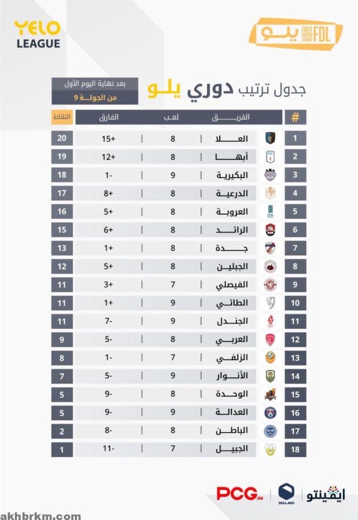 ختام مباريات الجولة الـتاسعة ضمن دوري يلو للدرجة الأولى للمحترفين 2025-2026