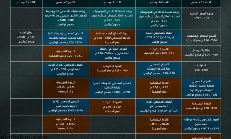 يُنظم المهرجان في مسرح كواليس بالدمام، مستمراً إلى يوم الثلاثاء المقبل ٩ ديسمبر، شاملاً برنامجاً متكاملاً يجمع بين العروض المسرحية المكثفة، والورش التدريبية المتخصصة، والندوات النقدية التي تثري المشهد الثقافي، مستهدفاً الجمهور العام، والمهتمين، والممارسين، والنقاد في المجال المسرحي، بالإضافة إلى الصحافيين.