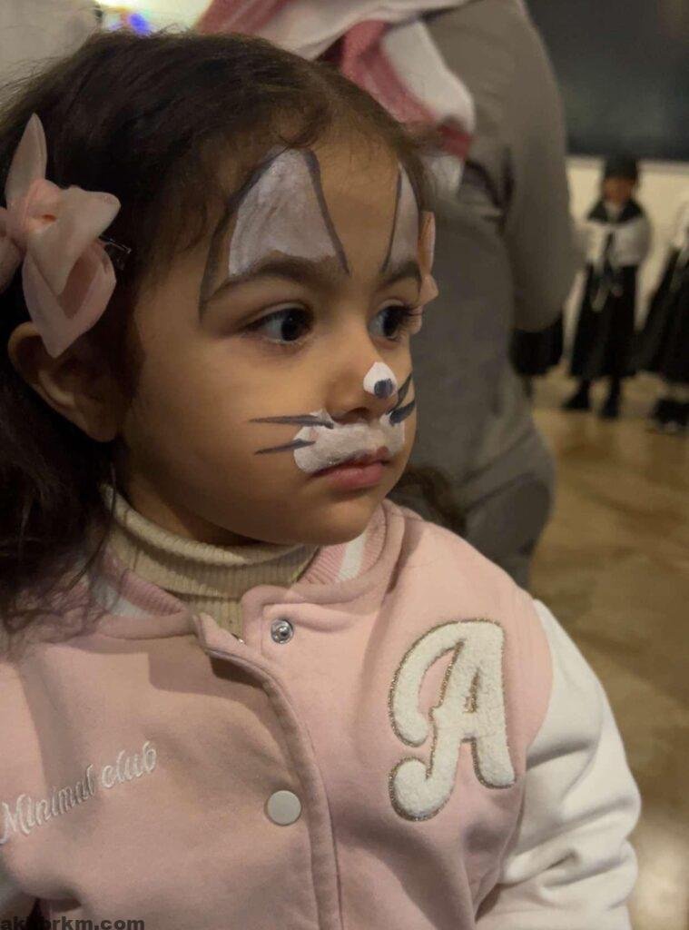 4 . ركن “الرسم على الوجه” للأطفال و تضمن هذا الركن رسومات مبتكرة للأطفال مستوحاة من الحروف والأشكال العربية، مما أضاف جوًا من المرح والمتعة للفعالية .