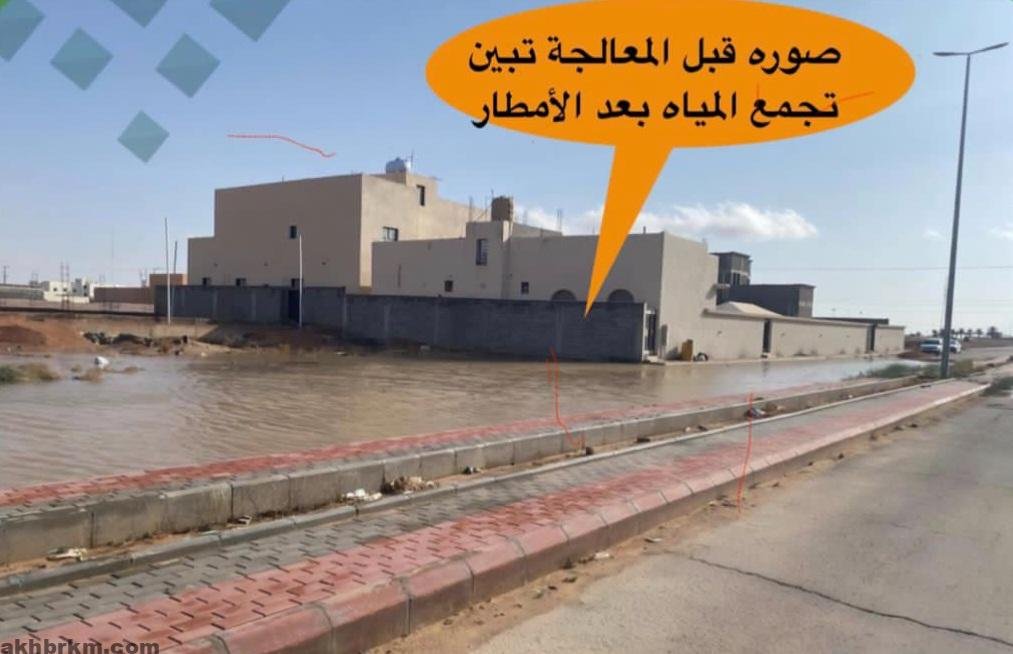 بلدية العويقيلة تعالج تجمعات مياه الأمطار في مركز المركوز