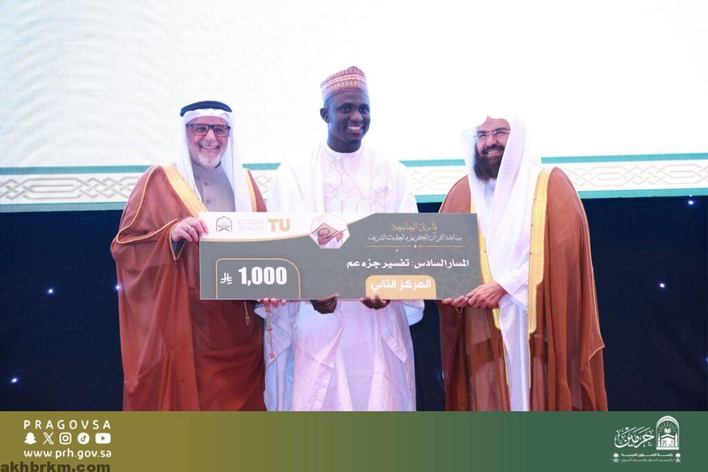 كما شهد الحفل تكريم الفائزين وتسليم جوائزهم وسط حضور واسع من منسوبي الجامعة وطلبتها، مما يعكس اهتمام الجامعة بالبرامج القرآنية ورعايتها للمبادرات التي تُعزز القيم الإيمانية والعلمية لدى الشباب.