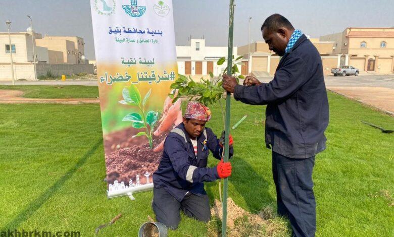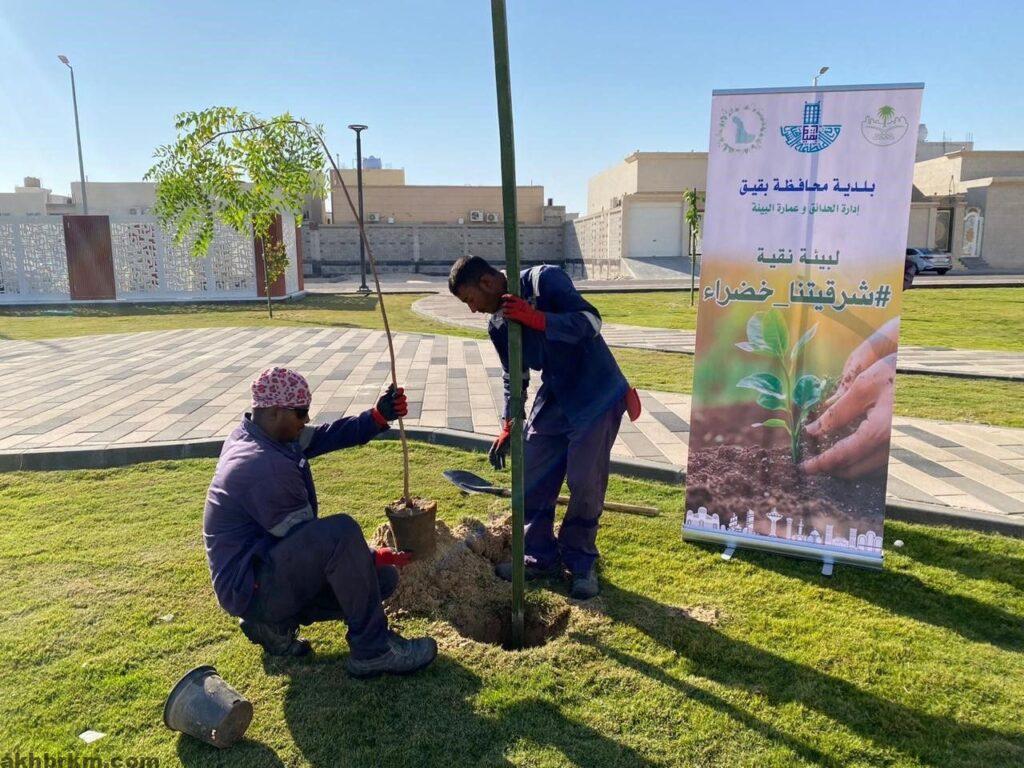 √ بلدية بقيق في حصاد موسم الزراعة 3,500 شجرة و 170 ألف زهرة..