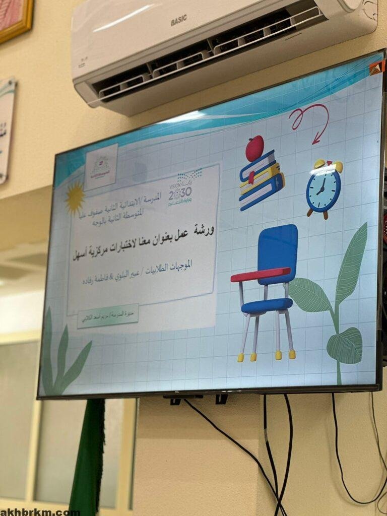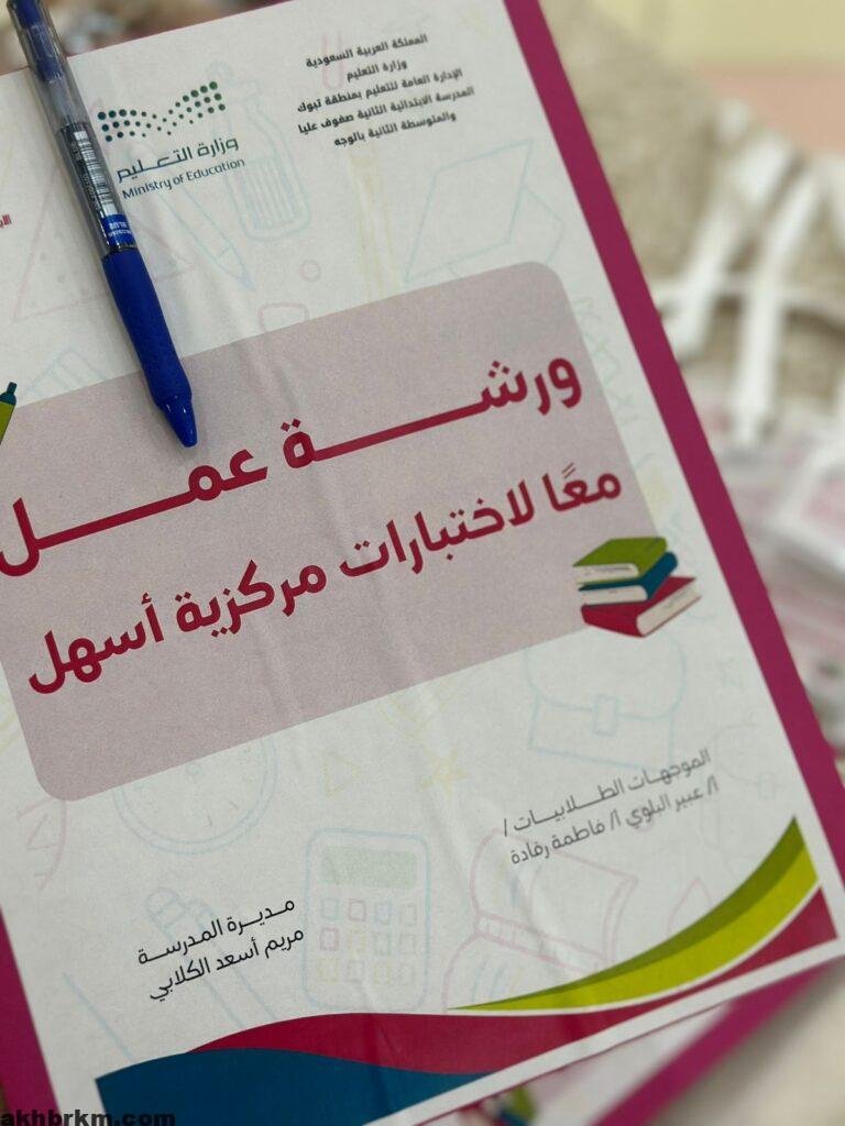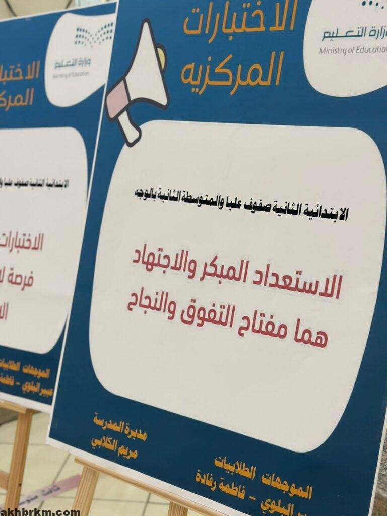 وفي هذا الصدد أقامت الابتدائية والمتوسطة الثانية بالوجه التابعة لإدارة تعليم تبوك ورشة عمل بعنوان : معاً لاختبارات مركزية أسهل بنجاح وسط تنظيم متكامل.