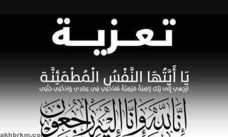 وإدارة ومنسوبو صحيفة اخباركم يتقدمون بخالص التعازي والمواساة للزميل محمد الحارثي ولأسرة الفقيد ويسألون الله أن يتغمده بواسع رحمته ورضوانه ويسكنه فسيح جناته ويلهم أهله وذويه الصبر والسلوان وإنا لله وإنا إليه راجعون .