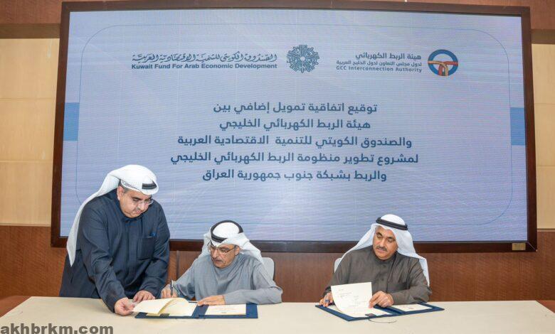 وقّعت هيئة الربط الكهربائي لدول مجلس التعاون لدول الخليج العربية، اليوم الأحد، اتفاقية قرض إضافي مع الصندوق الكويتي للتنمية الاقتصادية العربية، يقدم بموجبها الصندوق قرضًا بقيمة 8 ملايين دينار كويتي (نحو 25.5 مليون دولار أمريكي) للإسهام في تمويل مشروع تطوير وتعزيز منظومة الربط الكهربائي الخليجي وربطها بشبكة جنوب جمهورية العراق.