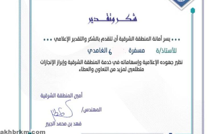 أمانة المنطقة الشرقية تكرّم الإعلامية مسفرة الغامدي