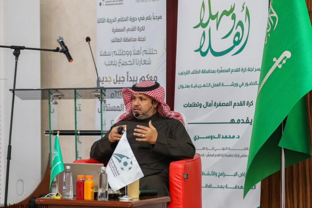 بحضور مدير فرع مكتب وزارة الرياضة بمحافظة الطائف الأستاذ عبدالله الزايدي، وكذالك رئيس لجنة كرة القدم بالطائف الأستاذ طلال الحارثي وأعضاء اللجنة أقام الدكتور محمد الدوسري رئيس الاتحاد الدولي لكرة القدم المصغرة (IMF) ورئيس جمعية كرة القدم المصغرة بالمملكة العربية السعودية ورشة عمل تعريفية بكرة القدم المصغرة، وذلك بمحافظة الطائف
