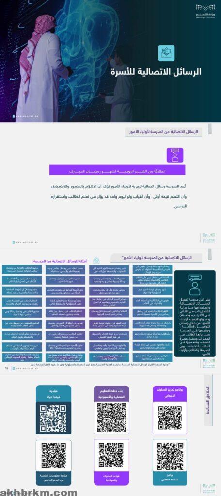 وأهابت بالأسر وأولياء الأمور تفعيل أدوارهم في تعزيز القيم الوطنية والإسلامية من خلال متابعة تعلم أبنائهم وبناتهم خلال شهر رمضان المبارك.