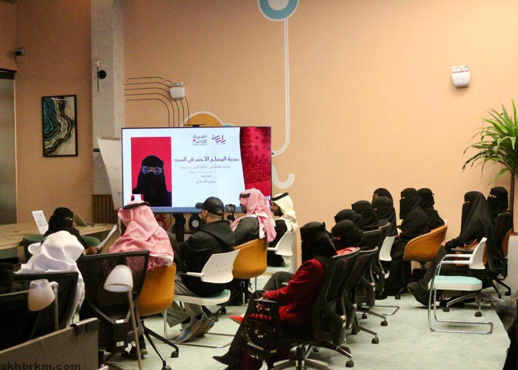 وقدّمت الفعالية الأستاذة سلوى الأنصاري، حيث تناولت خلالها حضور اللون الأحمر في السرد الأدبي، ودلالاته الرمزية والنفسية، وما يحمله من معانٍ تتقاطع مع التجربة الإنسانية والبعد الثقافي في النصوص الأدبية.