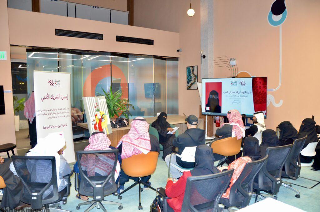 أقام الشريك الأدبي مقهى إيسن بمدينة تبوك فعالية ثقافية بعنوان «رمزية الوشاح الأحمر في السرد.. قراءة ثقافية في دلالة اللون ورمزيته»، وذلك في جادة 30 – بنك التنمية الاجتماعية.