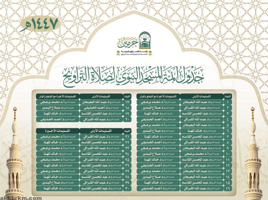 وأوضحت الرئاسة أن الجدول يراعي الترتيب الزمني للأئمة والمؤذنين بما يحقق الانسيابية في أداء الصلوات ويعزز الأجواء الإيمانية والروحانية التي يشهدها الحرمان الشريفان خلال الشهر الفضيل