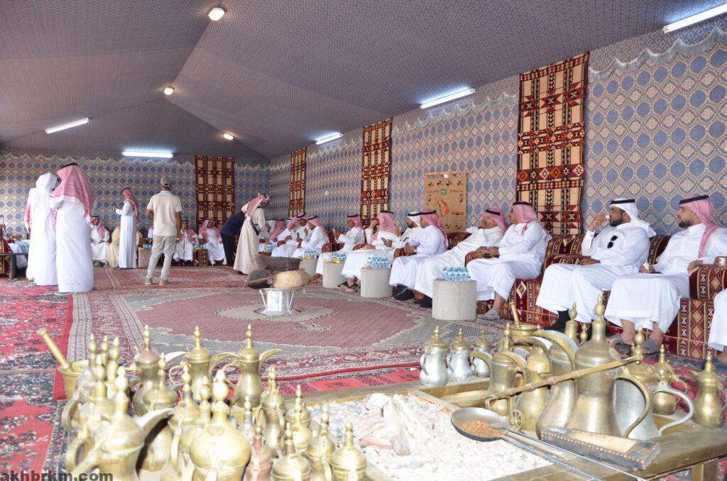 حيث دارت القهوة العربية يسبقها الترحيب الحار من قبل المضيف بضيوف وزواره تبادل خلالها الوفد والحضور القصائد التي تدل علي ترابط أفراد القبيله اولا وأبناء الوطن ثانيا .