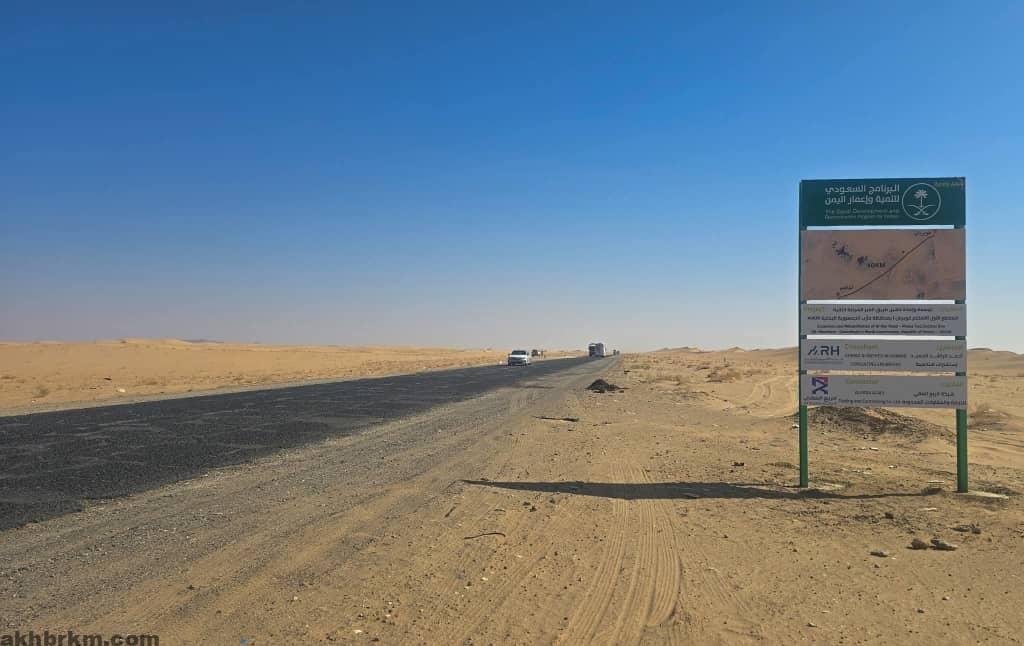 وكان البرنامج قد أطلق المشروع في 24 فبراير 2020 بطول إجمالي يبلغ 132 كيلومتراً، موزعة على ثلاثة مقاطع رئيسية هي: (المختم – غويربان) 40 كيلومتراً، و(غويربان – الضويبي) 40 كيلومتراً، و(الضويبي – العبر) 52 كيلومتراً، باعتباره طريقاً استراتيجياً يربط عدداً من المحافظات ويشكل منفذاً برياً مهماً بين اليمن والمملكة.