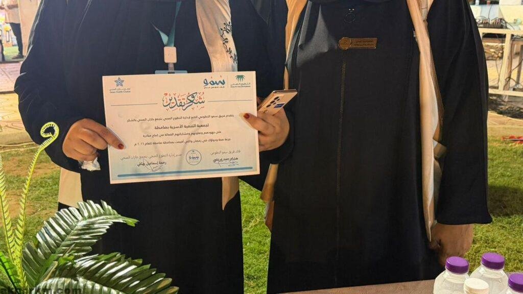 جمعية التنمية الأسرية بصامطة “رواسم “تتصدر الجهات المكرمة في فعالية صحة وداوءك في رمضان