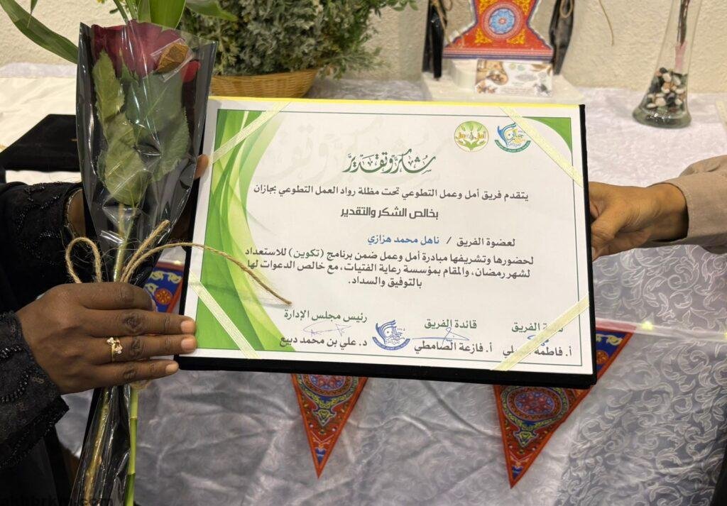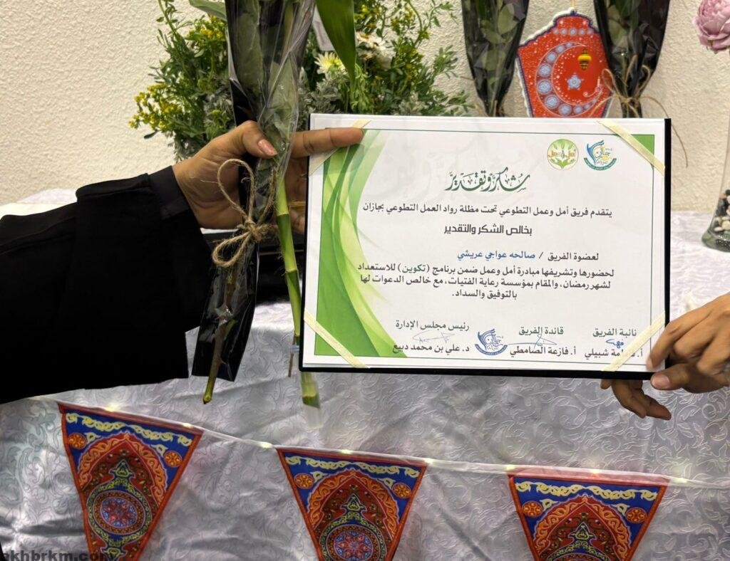 نفذ فريق أمل وعمل وفريق بصمتنا عطاء تحت مظلة رواد العمل التطوعي بجازان مبادر تطوعية بمؤسسة رعاية الفتيات عن استقبال شهر رمضان والاحتفاء بيوم التاسيس .