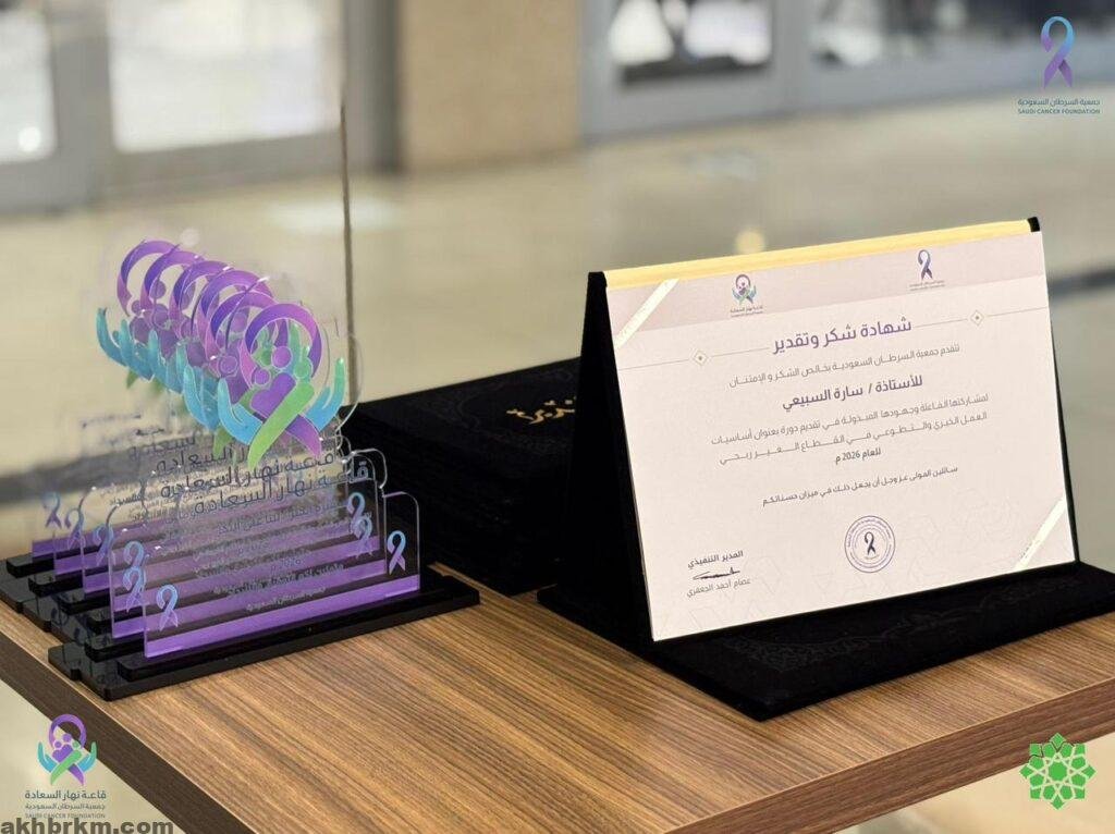 خرّجت جمعية السرطان السعودية طالبات مدارس الظهران الأهلية في قاعة نهار السعادة ضمن دورتها التدريبية لتأهيلهم على العمل التطوعي بعنوان“قوة التطوع 4″