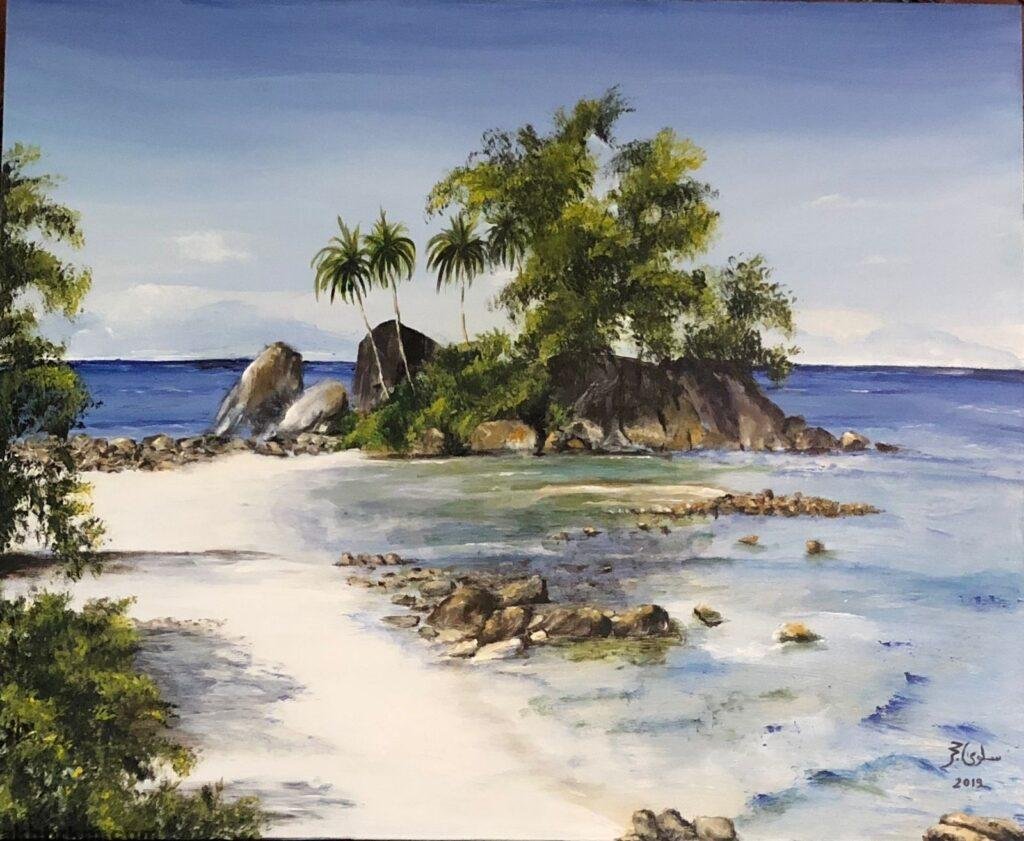 “هذا العمل يمثل حالة مصالحة مع الطبيعة وعودة إلى الصفاء الأول. الجزيرة الصغيرة المحاطة بالماء تحكي قصة عزلة جميلة تمنح التأمل وإعادة التوازن.